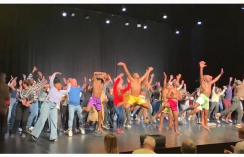 Enfin, après un repas tiré du sac, le groupe s’est rendu au Radiant à Caluire pour assister au spectacle « Vagabundus » présenté par 13 danseurs et danseuses et dirigé par le chorégraphe mozambicain Idio Chicava dans le cadre de la Biennale de la Danse. Grâce au financement de la Région Auvergne-Rhône-Alpes, les élèves ont eu la chance d’assister à cette représentation touchante et dynamique sur la thématique des migrations qui fit écho au travail mené en cours d’anglais et d’espagnol. A la fin du spectacle, les élèves ont pu monter sur scène avec la troupe pour un moment énergisant qui permis à tous et toutes de repartir avec des étoiles dans les yeux.